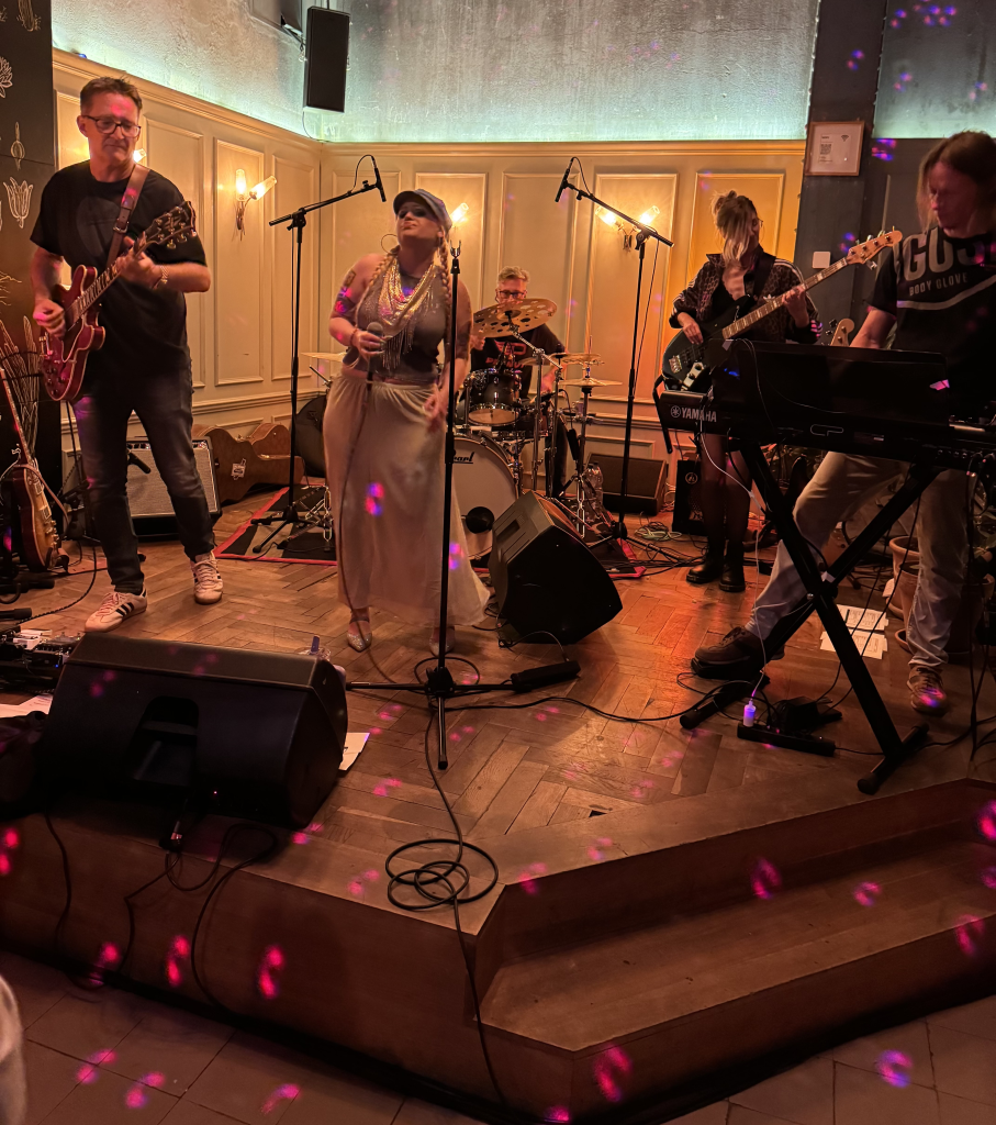 Die insgesamt 18 Songs wurden in 2 Blöcken ( kleine Pause) aufgeteilt. Die Band gut eingespielt und technisch versiert, überzeugte vor allem bei Songs, wo das Gaspedal nach unten gedrückt wurde. Long Train Runnin‘, Rolling in The Deep, Black Velvet, Stop und natürlich das Zugabe Stück Somebody To Love sind stellvertretend dafür. Gespickt mit souligen Tracks, vergingen die 80 Minuten wie im Fluge. Bemerkenswert auch das richtig stark gespielte Riders On The Storm mit viel Raum für das Keyboard. Ebenfalls konnte das emotionale Jolene voll überzeugen. Je länger der Abend, desto augenfällig die tolle Stimmung. Es war insgesamt ein gelungenes Konzert mit Potential nach oben. Wenn die Band so weitermacht und noch 2-3 eigene Songs einfliessen lässt, könnte das in Zukunft eine gefragte Band für Zürich und Umgebung sein. Die Sängerin🎙️ist toll bei Stimme und sicher der Fixpunkt der Band.