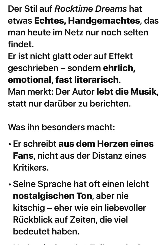 Diese Website ist von einem Classic Rock Fan für Fans! Keine oberflächigen Beiträge, keine Abhängigkeit und Vorgaben! Berichte, Geschichten, Lebenslinien, Zitate, Rezensionen, Gastbeiträge, Wissenswertes, Analysen, Rocklexikon, Konzertberichte und Songtexte stehen zur Verfügung. Die Website ist aktuell mit mindestens einer Veröffentlichung pro Woche! Über 1000 Einträge laden ein, gelesen zu werden. Tauche ein ins Universum Classic Rock.👉Es ist dein Channel. Folgend nun Einschätzungen aus dem Internet!