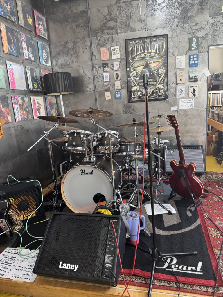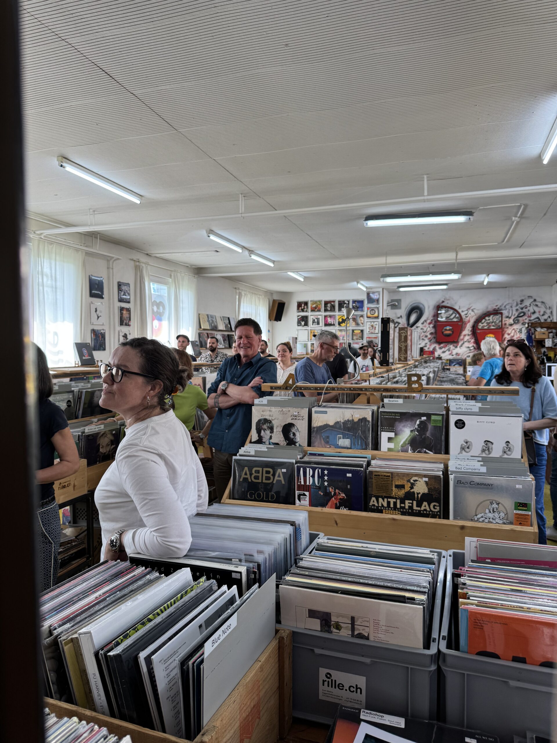 Tolles Wetter draussen und erdige Klänge aus dem innern der Rille, beschallen die Location bis nach draussen. Ein grandioser Tag, wo sich alles um Musik dreht. Genau genommen um Vinyl! Das Wetterglück bescherte dem Kurt einen grossen Andrang seit dem Morgen. Die Kunden kommen in seine Rille, um die Vinyl Schätze zu begutachten. Das ist keine Laufkundschaft! Vinyl Freunde aus vielen Regionen kommen in die Rille. Man will dabei sein und den Vinyl-Tag mit den vielen speziellen Veröffentlichungen feiern.